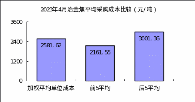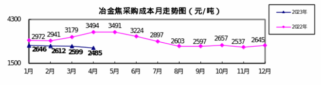 2023年4月,對標企業(yè)采購成本以下降為主,煤焦類品種降幅較大。