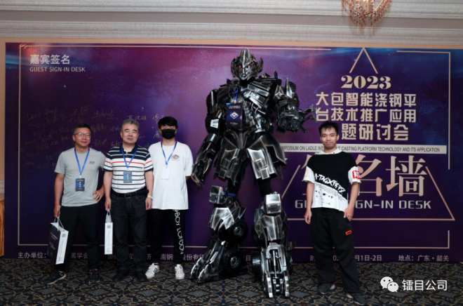 來自全國各地鋼企的董事長、總經理、總工程師,以及煉鋼廠廠長共二百多人出席了此次會議。并就大包智能澆鋼平臺進行了專題詳細互動交流研討。鐳目機器人變形金剛在會議簽名墻處展示,并與代表互動交流,成為此次會議的亮點之一。