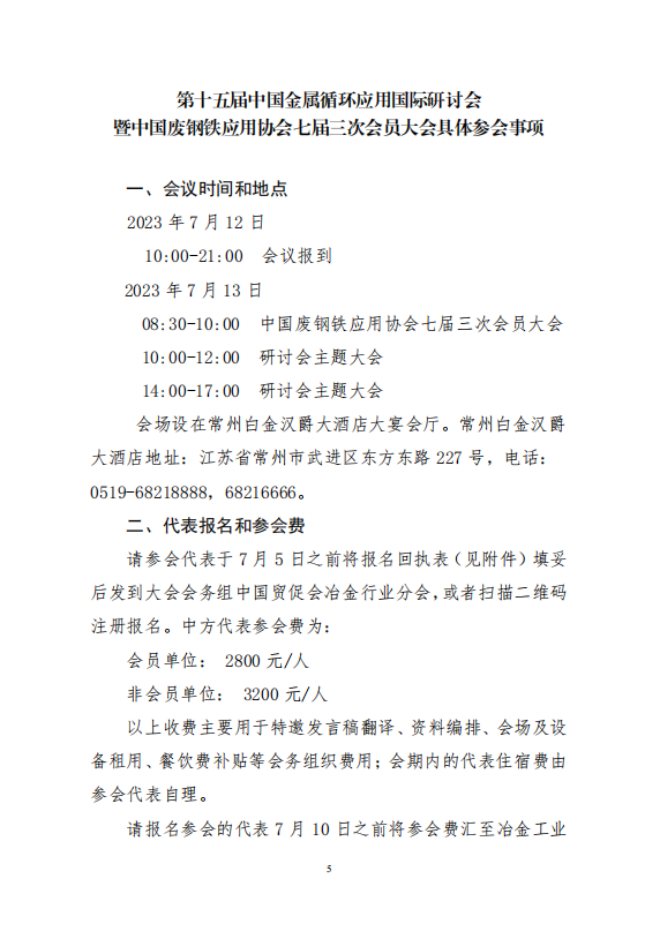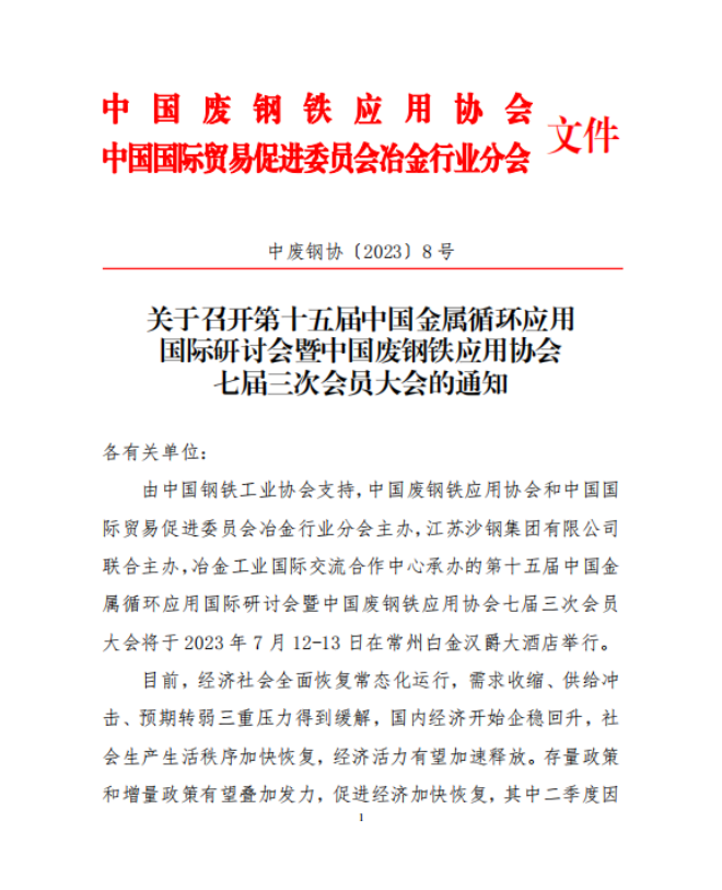關(guān)于召開第十五屆中國金屬循環(huán)應(yīng)用國際研討會暨中國廢鋼鐵應(yīng)用協(xié)會七屆三次會員大會的通知