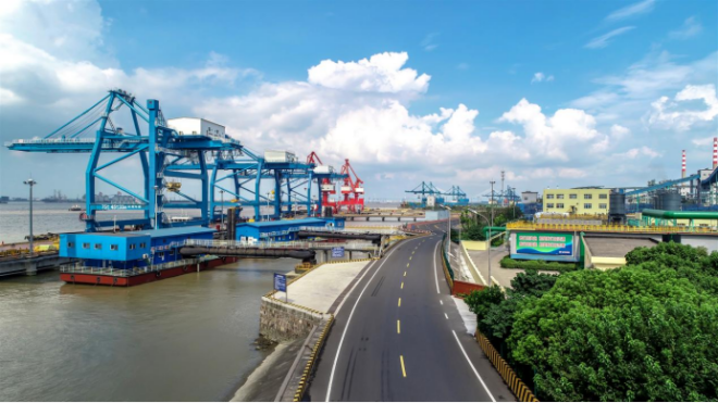 龍騰特鋼積極響應“雙碳”政策,在龍騰碼頭封閉大棚投資建設了23.5MW棚頂光伏項目,項目位于常熟龍騰特鋼樓頂,由6.8萬塊單晶光伏板拼接而成,面積比“鳥巢”還大,是目前國內(nèi)已知最大跨度的弧形BIPV項目。“把光伏板融入建筑中,既達到超低排放,又能實現(xiàn)企業(yè)的低碳發(fā)展?!背J忑堯v特鋼外協(xié)辦主任袁燕介紹,該項目最大每年可提供約4850萬千瓦時清潔電力,每年可減少碳排放量約3.8萬噸。龍騰碼頭也成為全省首個“碳中和”碼頭,實現(xiàn)減污降碳協(xié)同增效。據(jù)悉,該項目目前正在申報吉尼斯世界紀錄。