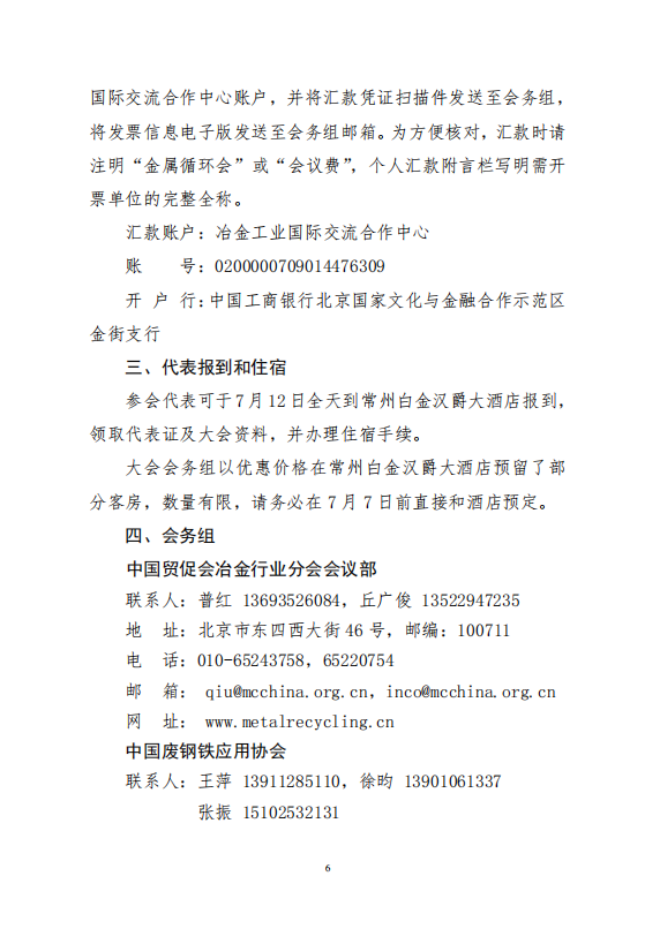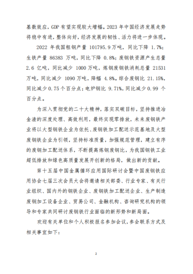 關于召開第十五屆中國金屬循環應用國際研討會暨中國廢鋼鐵應用協會七屆三次會員大會的通知