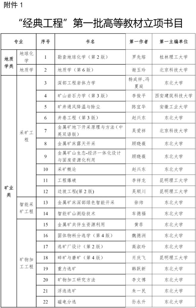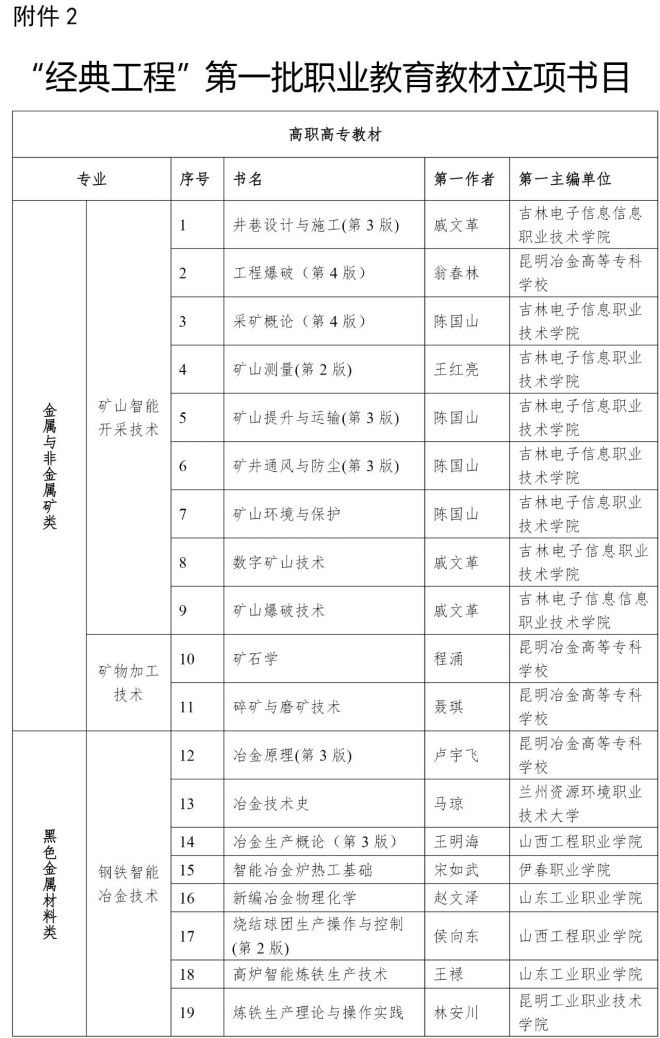 關于公布“冶金專業教材和工具書經典傳承國際傳播工程”第一批立項教材書目的通知