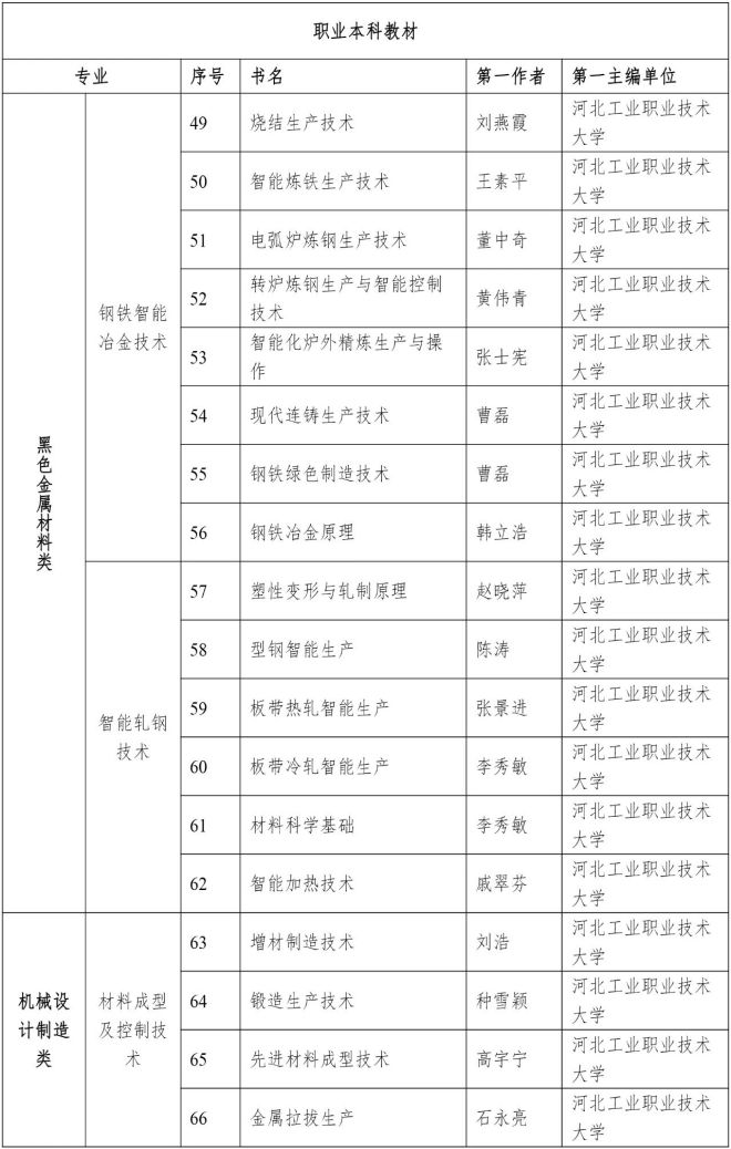 為打造精品冶金專業教材,切實提高教材建設水平,根據“冶金專業教材和工具書經典傳承國際傳播工程”(以下簡稱“經典工程”)工作安排,經單位申報、多輪評審、意見征詢、專家審定等環節,中國鋼鐵工業協會于近日公布了“經典工程”第一批立項教材書目,其中,高等教材 96 種(見附件1),職業教育教材 66 種(見附件2),具體工作由冶金工業出版社承擔。