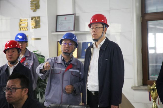 在四煉鐵主控室,張連航匯報了企業的發展歷程、先進指標及工藝裝備、專業化特色產品、綠色發展、企業文化、社會責任等情況。葛慧君就企業降碳減排、提質增效等課題與張偉進行深入交流,對石橫特鋼高效的經濟運營管理、先進的裝備水平、扎實的超低排放工作等給予高度肯定。