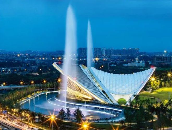 成都為本屆大運(yùn)會新建了13個場館項(xiàng)目,其中最引人注目的莫過于本屆大運(yùn)會核心場館、開幕式主體育場所在地——東安湖體育公園。東安湖體育公園包含“一場三館”(名為“飛碟”的4萬座甲級體育場、1.8萬座多功能體育館、5000座游泳跳水館和綜合小球館),同時包含成都大運(yùn)會博物館、主火炬塔等景觀。據(jù)統(tǒng)計,東安湖體育公園主體鋼結(jié)構(gòu)總用鋼量約為2.75萬噸,相當(dāng)于4座埃菲爾鐵塔的用鋼量。