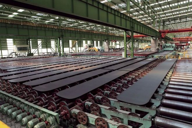 圖為重慶鋼鐵高強(qiáng)度結(jié)構(gòu)鋼板。(童鼎 別程程/攝)
