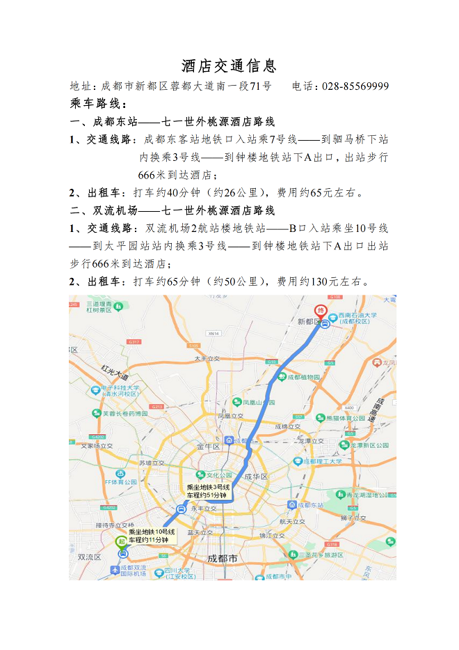 2、報到酒店:成都七一世外桃源酒店( 028-85569999)