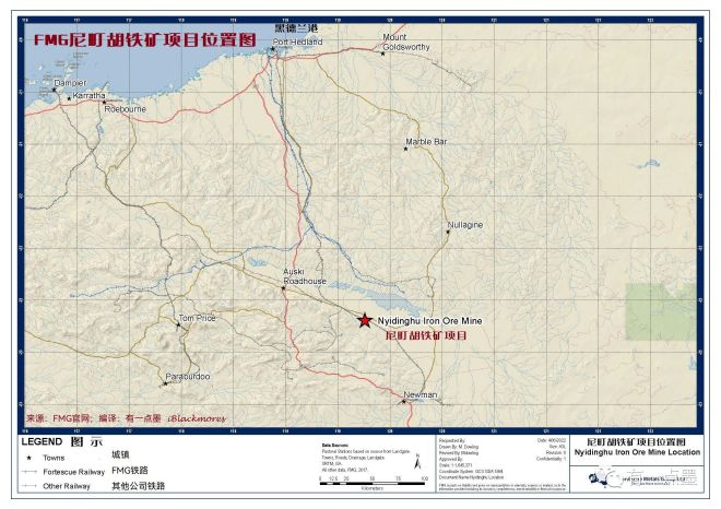 近日,根據向西澳大利亞環境保護局提交的監管文件顯示,FMG集團的子公司奇徹斯特金屬公司(Chichester Metals)提議開發和運營其位于西澳紐曼西北約80公里處的鐵礦礦區——尼町胡項目(Nyidinghu Iron Ore Mine;又可譯作“奈町扈”)。