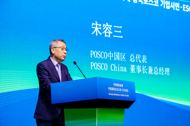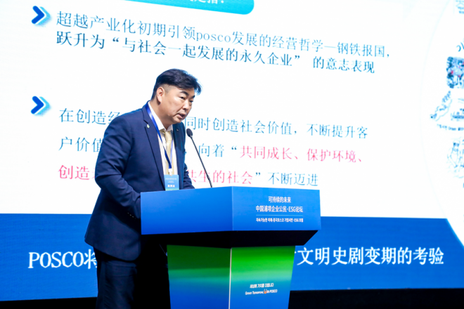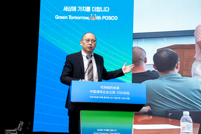 POSCO ESG Group負(fù)責(zé)人樸正奭發(fā)表致辭,他承諾,“浦項(xiàng)將以‘負(fù)責(zé)任的企業(yè)公民’形象,切實(shí)履責(zé),與此同時(shí)為與其他企業(yè)攜手并進(jìn),努力成為未來經(jīng)營先導(dǎo)者”。