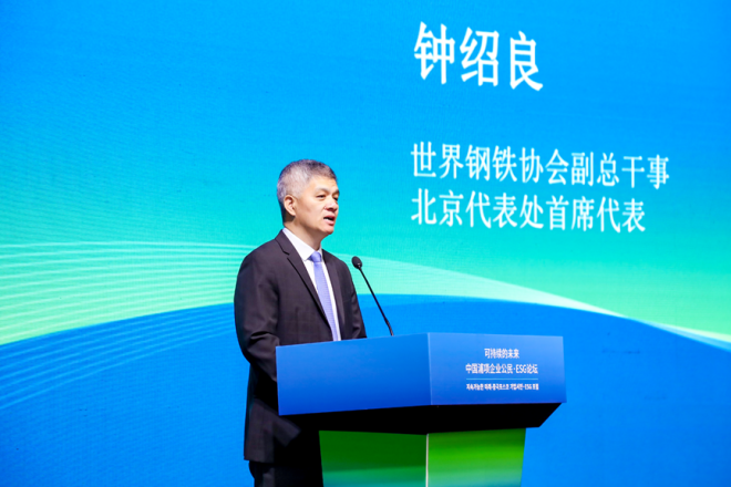 頒獎(jiǎng)儀式結(jié)束后,會(huì)議進(jìn)入“專題討論”環(huán)節(jié),此次討論以“ESG與企業(yè)競(jìng)爭(zhēng)力”為主題,由中國社科院教授、責(zé)任云研究院創(chuàng)始院長(zhǎng)鐘宏武主持,中國鋼鐵工業(yè)協(xié)會(huì)副秘書長(zhǎng)王德春、SK中國副總裁田福熙、寶武集團(tuán)企業(yè)文化處處長(zhǎng)王丹云、浦項(xiàng)集團(tuán)POSCO ESG Group負(fù)責(zé)人樸正奭四位嘉賓參與討論。