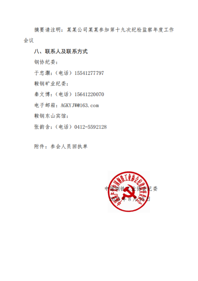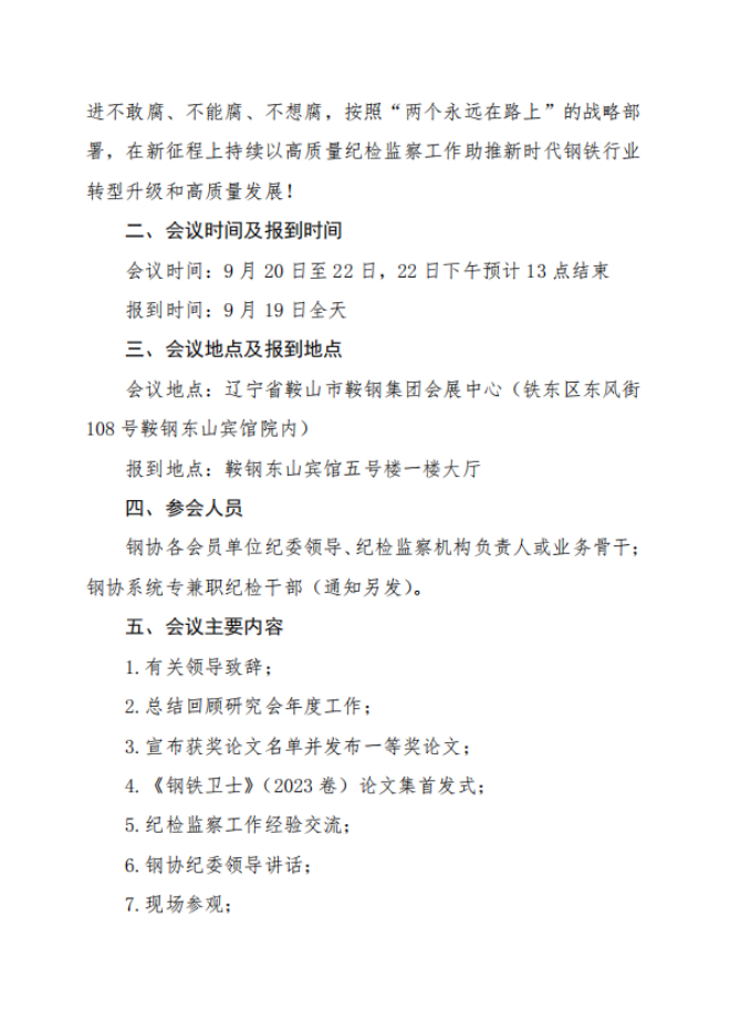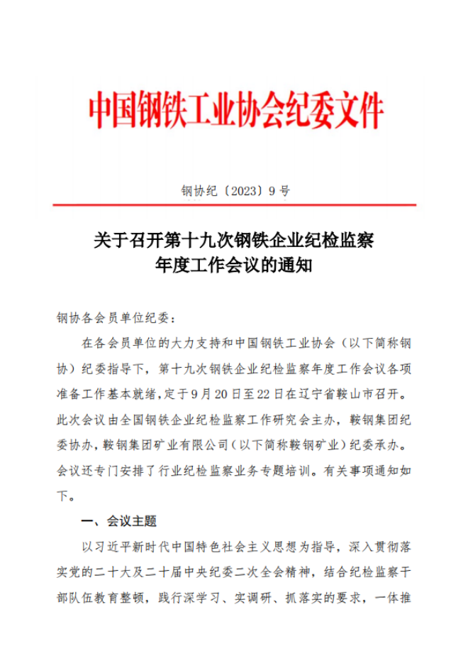關于召開第十九次鋼鐵企業紀檢監察年度工作會議的通知