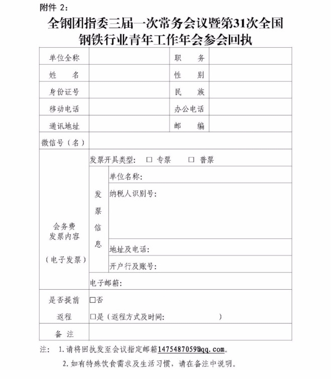(一)本次年會預計有80余家委員單位的與會代表,團中央、中鋼協、酒鋼集團公司領導、團省委、團市委領導等參加。本著精簡辦會、厲行節約的原則,各單位參會人員原則上不超過 2人,由各單位團委書記或副書記帶隊。