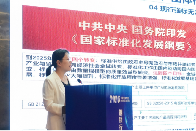 王姜維在會上對鋼鐵企業重點工序能效標桿對標指南團體標準進行了解讀,她介紹了團體標準的制定背景和主要技術內容,并對極致能效工作提出了建議:以標準化支撐能效提升、以行動計劃引導能效提升、以產業協同助力能效提升。她建議各企業在立足自身實際的基礎上,制定本企業能效提升計劃,指導企業系統全面分步實施節能降碳計劃。在行業開展極致能效行動的同時,建議推進跨行業跨領域協同降碳,發揮產業協同合力,助力高耗能行業節能降碳工作邁上新臺階。