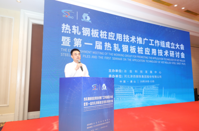 金秋十月,清風送爽。為構建熱軋鋼板樁應用推廣體系,促進鋼板樁應用與工程建筑深度融合,不斷推進國內熱軋鋼板樁市場應用,積極拓展國際市場及國際交流,10月11日至12日,在中國鋼鐵工業協會、中國金屬學會、中國鋼結構協會指導下,由中國鋼鐵工業協會冶金科技發展中心主辦,津西鋼鐵股份公司承辦的熱軋鋼板樁應用技術推廣工作組成立大會暨第一屆熱軋鋼板樁應用技術研討會在唐山隆重舉行,會議由中國鋼鐵工業協會冶金科技發展中心主任姜尚清主持。
