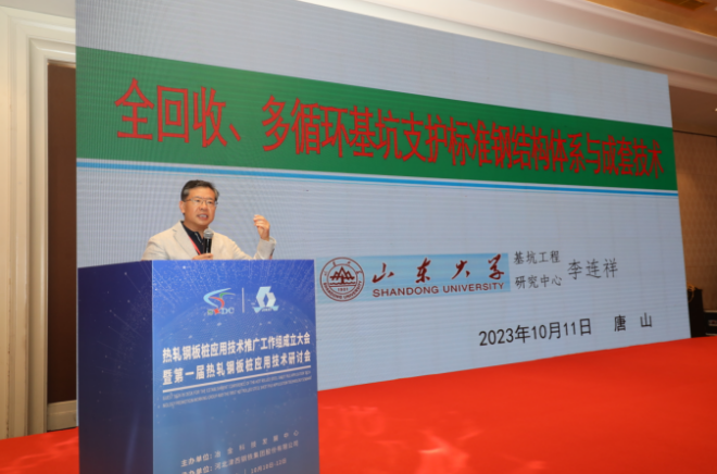 李連祥主題報告:《全回收、多循環基坑支護標準鋼結構體系成套技術》。