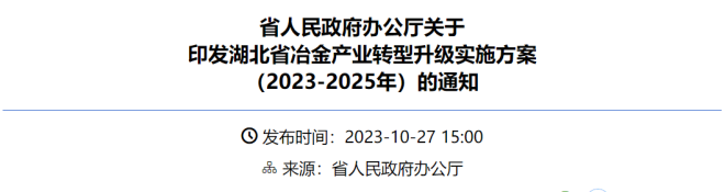 《湖北省冶金產(chǎn)業(yè)轉(zhuǎn)型升級實(shí)施方案(2023-2025年)》已經(jīng)省人民政府同意,現(xiàn)印發(fā)給你們,請認(rèn)真貫徹執(zhí)行。