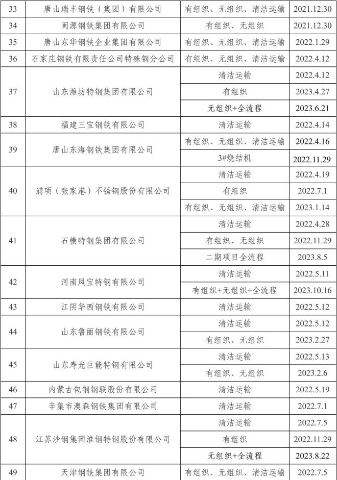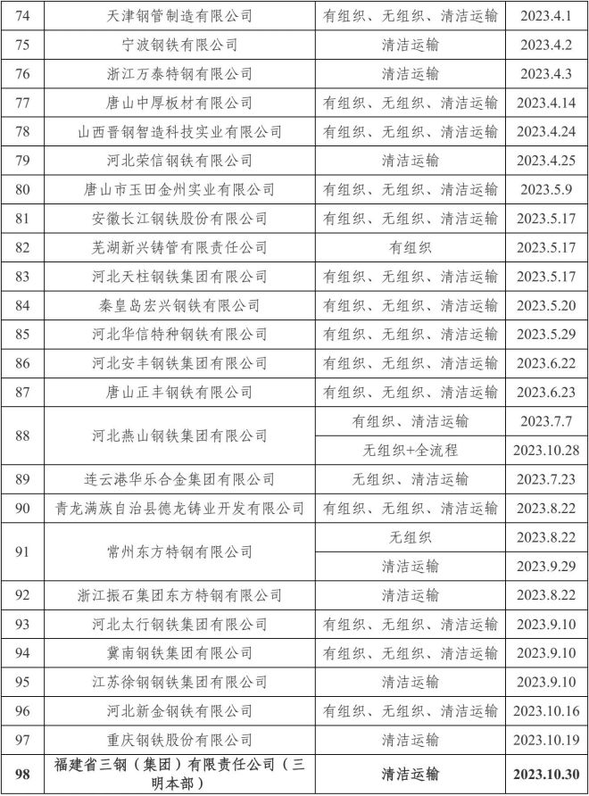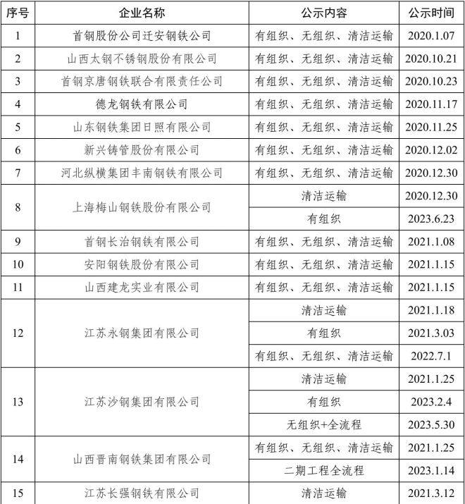 自2020年8月起,中國(guó)鋼鐵工業(yè)協(xié)會(huì)開(kāi)展了鋼鐵企業(yè)超低排放改造和評(píng)估監(jiān)測(cè)進(jìn)展情況公示工作。截至目前,已有98家企業(yè)在鋼協(xié)網(wǎng)站進(jìn)行公示。已公示企業(yè)名單匯總及各企業(yè)公示內(nèi)容整理如下: