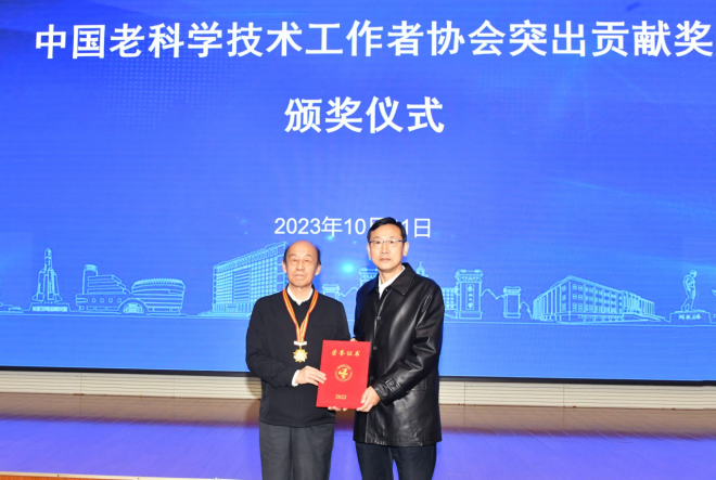 遼寧省老科協副會長胡偉宣讀表彰決定,張鐵民為王國棟院士頒發獎狀和獎牌。