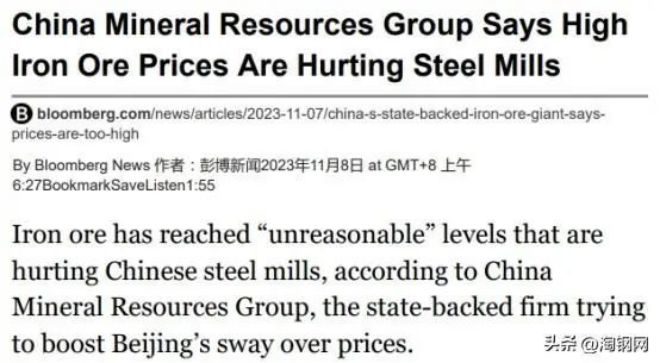 據彭博社(Bloomberg)報道,中國礦產資源集團(China Mineral Resources Group, CMRG)表示,鐵礦石已達到“不合理”的水平,這對中國(CHN)的鋼鐵廠造成了不利影響。