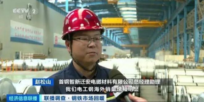 首鋼智新遷安電磁材料有限公司總經理助理 趙松山:電工鋼海外銷量增幅明顯,為開拓全球市場,我們持續進行全球化的布局。推進高端產品在海外市場的認證,包括銷售。