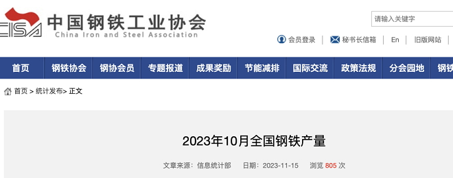 近日,中國鋼鐵工業協會網站發布了2023年10月全國鋼鐵產量一文。