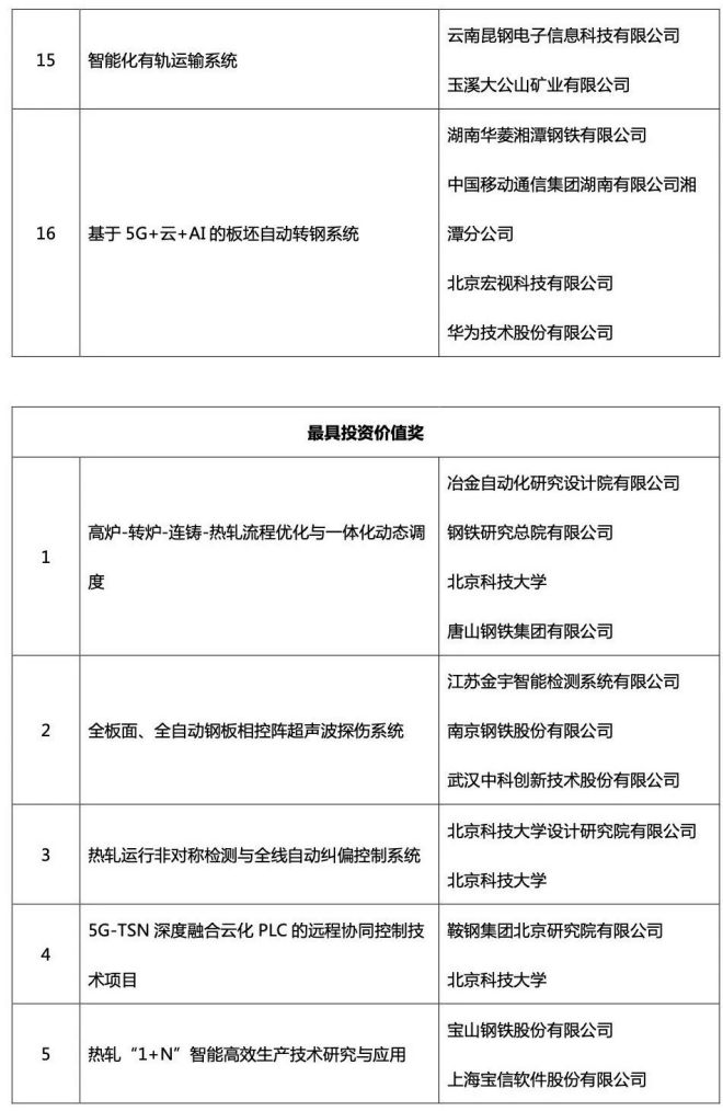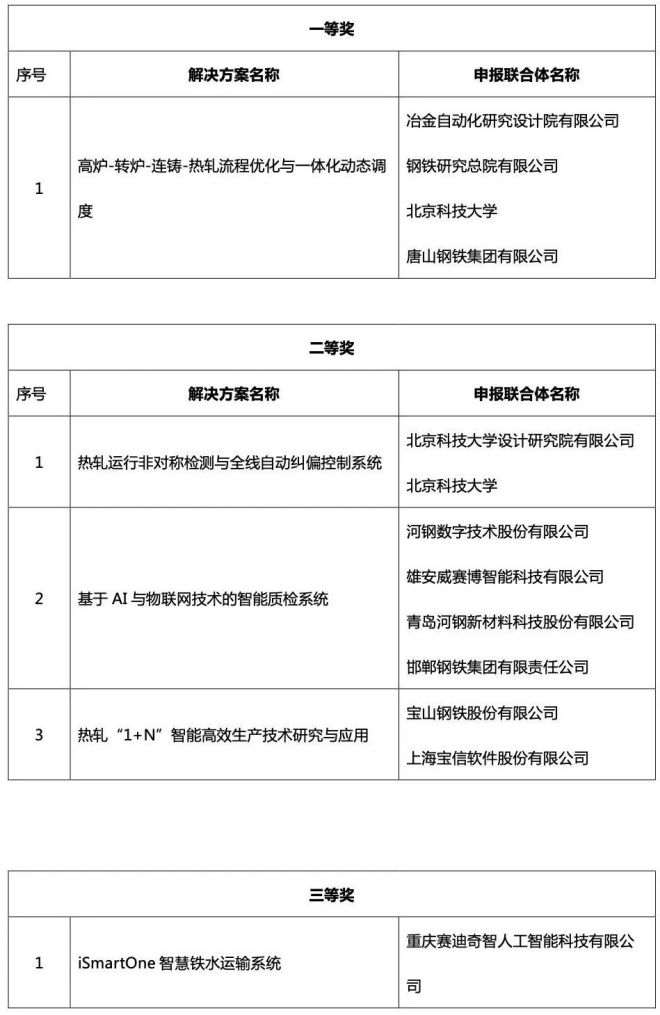 經過激烈地角逐,由冶金自動化研究設計院有限公司、鋼鐵研究總院有限公司、北京科技大學、唐山鋼鐵集團有限公司聯合申報的《高爐-轉爐-連鑄-熱軋流程優化與一體化動態調度》獲得一等獎。此外,大賽還評出二等獎3名,三等獎6名,優秀獎16名,最具投資價值獎5名。
