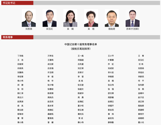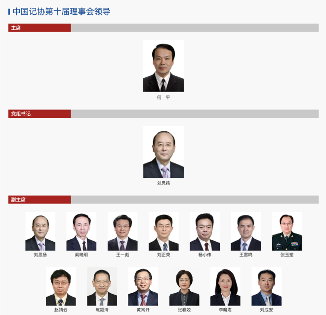 中國記協(xié)第十屆理事會領(lǐng)導(dǎo)如下: