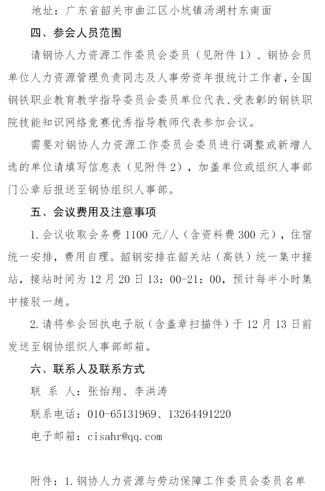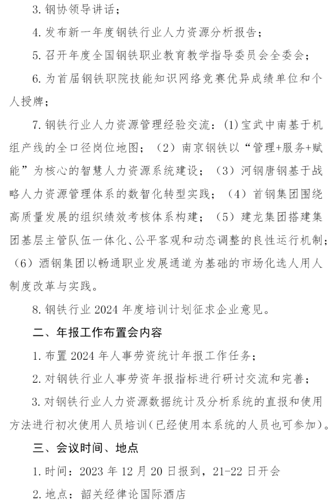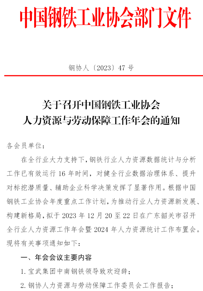 關于召開中國鋼鐵工業協會人力資源與勞動保障工作年會的通知