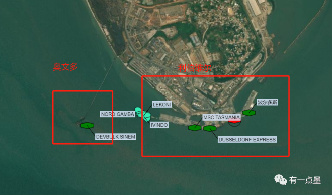奧文多港口停泊的這幾艘船里就可能有FMG的首發輪(來源:沸騰環貿)
