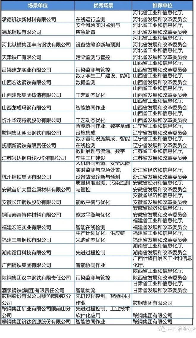 鋼鐵行業入選2023年度智能制造優秀場景名單:
