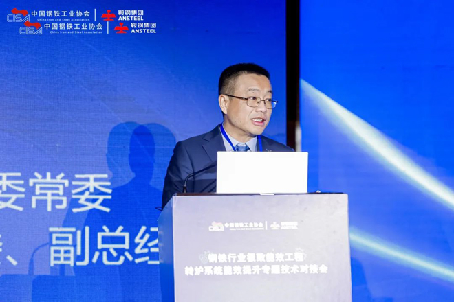 受鞍鋼集團、鞍鋼股份的委托,田勇在致辭時對參會的代表表示熱烈的歡迎,并介紹了鞍山鋼鐵在提高能效方面所做的工作。他表示,自“十四五”開局伊始,鞍山鋼鐵按照黨中央確定的方向,秉承“銘記長子擔當,矢志報國奉獻”初心,重點從強化頂層設計、推廣節能技術、開展全員節能行動等方面,堅定不移推進落實生態優先、綠色低碳發展戰略。“十四五”以來,鞍山鋼鐵能耗強度累計降低4.8%,節省能源達74萬噸標準煤,減少二氧化碳排放量190萬噸。當前,新一輪東北振興的各項部署已經全面鋪開,全省上下正在以超常規舉措打一場新時代振興遼寧的“遼沈戰役”。鞍山鋼鐵將繼續彰顯央企綠色擔當,不斷尋求綠色低碳發展與經濟社會和諧共存的新突破,為振興遼寧、振興東北、建設“美麗中國”,貢獻鞍鋼力量。