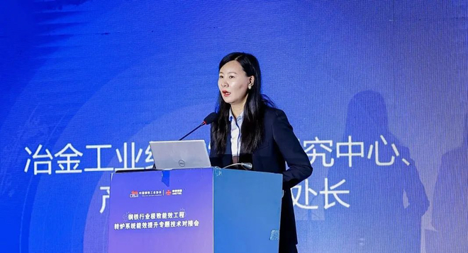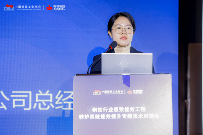 在隨后的報告環節,北京科技大學教授朱榮作題為《轉爐底吹二氧化碳煉鋼技術》的報告,北京科技大學教授徐安軍作題為《以實現極致能效為目的的轉爐煉鋼思考及初步實踐》報告,冶金工業經濟發展研究中心、產融研究處副處長李凌作題為《綠色金融助力鋼鐵極致能效工程案例分享》報告,中冶賽迪咨詢公司總經理助理蘇丹作題為《極致能效政策研究進展》的報告。鞍鋼股份有限公司鲅魚圈鋼鐵分公司煉鋼部部長馬勇作題為《轉爐系統能效提升探索與實踐》的報告,中國科學院力學所高工劉晨作題為《轉爐煉鋼實現標桿極致能耗實用技術探討》的報告。
