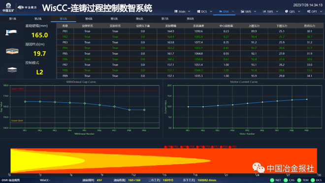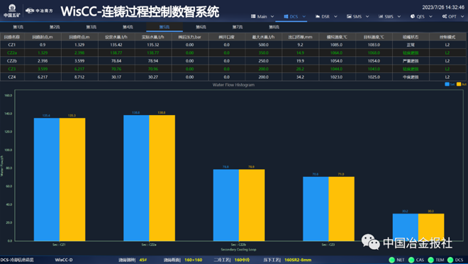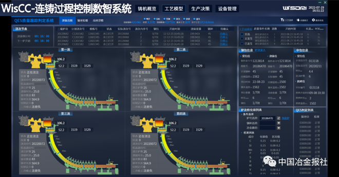 其中,最具代表性的,包括高效調(diào)整產(chǎn)品規(guī)格的板坯結(jié)晶器在線調(diào)寬技術(shù),可實現(xiàn)動態(tài)優(yōu)化冷卻的二冷輻切技術(shù),以及持續(xù)迭代的連鑄過程智能控制技術(shù)——依托特有的連鑄數(shù)據(jù)中臺與工藝模型管控平臺實現(xiàn)的系列成套鑄坯質(zhì)量控制技術(shù),包括結(jié)晶器專家系統(tǒng)、智能精準(zhǔn)動態(tài)配水技術(shù)、板坯凝固末端動態(tài)壓下技術(shù)、鑄坯質(zhì)量跟蹤與判定系統(tǒng)等。