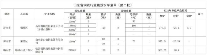 山東省鋼鐵行業能效水平清單(第二批)如下: