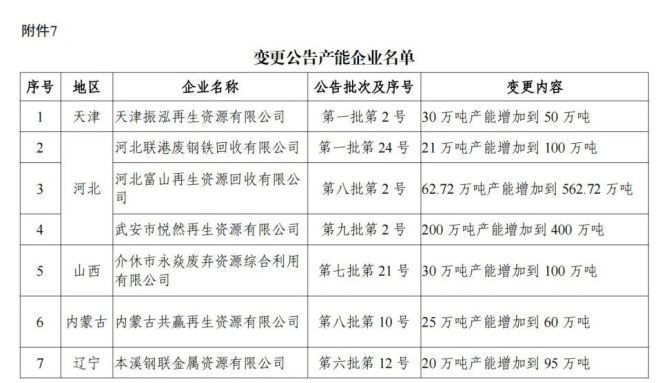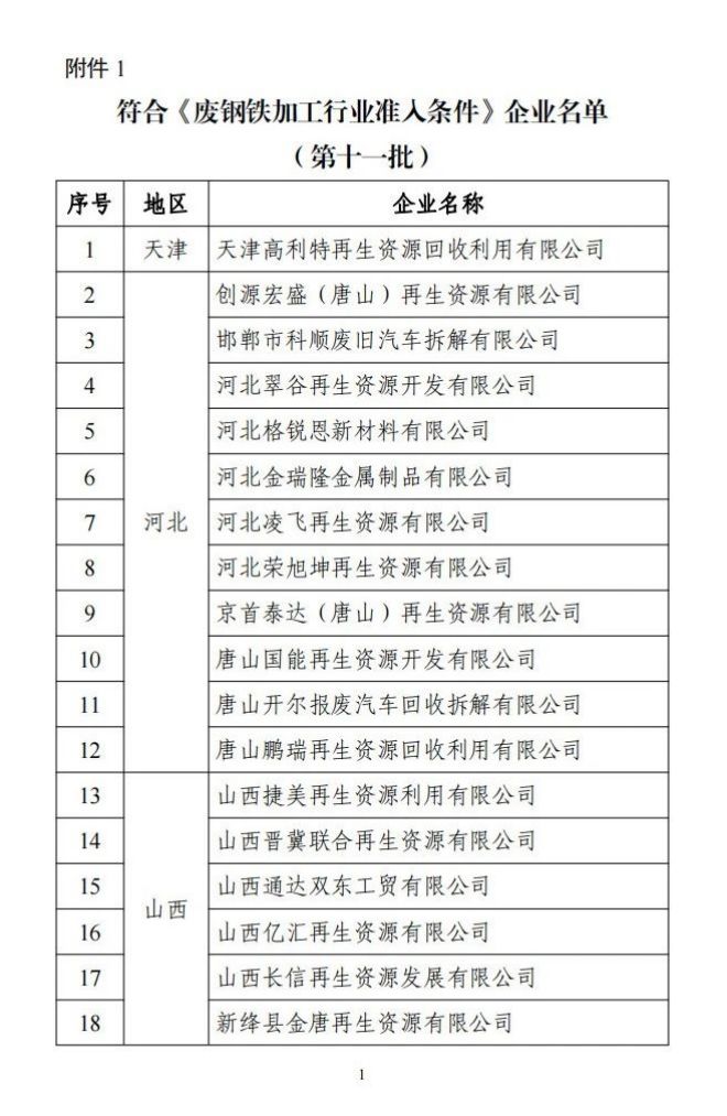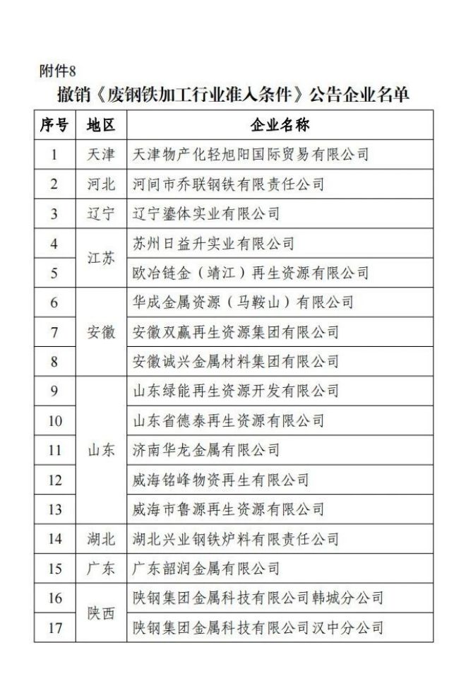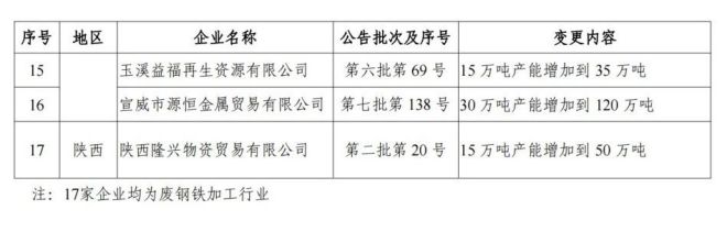 正式公告! 第十一批《廢鋼鐵加工行業準入條件》企業135家,變更名稱3家、變更產能17家和撤銷17家