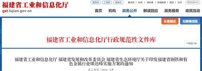 福建省工業(yè)和信息化廳 福建省發(fā)展和改革委員會 福建省生態(tài)環(huán)境廳關(guān)于印發(fā)福建省鋼鐵和有色金屬行業(yè)碳達(dá)峰實施方案的通知