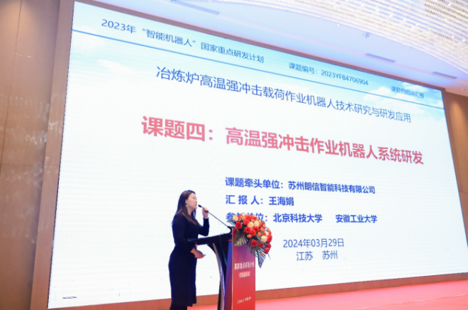 3月29日,由蘇州朗信智能科技有限公司(以下簡稱朗信科技)作為牽頭單位的國家重點研發計劃智能機器人重點專項——“冶煉爐高溫強沖擊載荷作業機器人技術研究與研發應用”項目啟動會在蘇州召開。這是工信部、地方政府、優秀企業、重點高校、行業協會攜手落實中央部署、大力培育和發展新質生產力的重要行動。