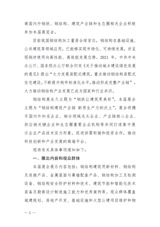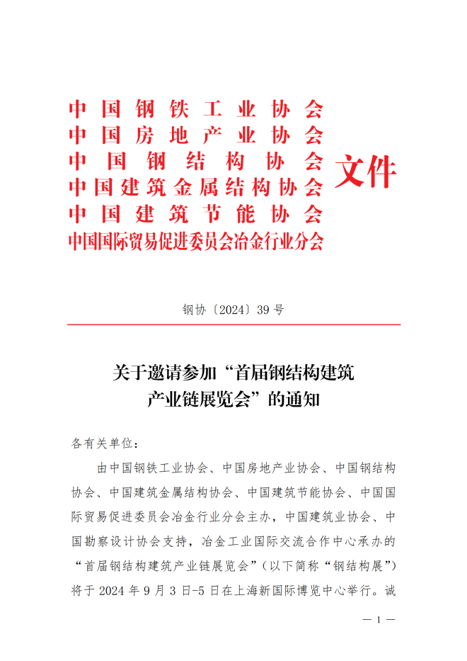 關于邀請參加“首屆鋼結構建筑 產業鏈展覽會”的通知