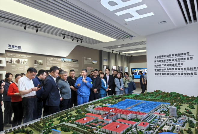 圖為會議期間與會代表參觀了河鋼石鋼廠區