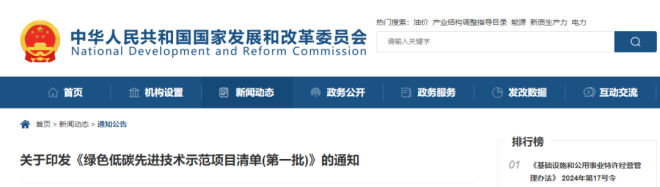 4月16日,中華人民共和國國家發展和改革委員會網站發布了關于印發《綠色低碳先進技術示范項目清單(第一批)》的通知(以下簡稱《通知》)。