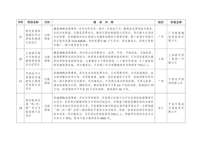 為貫徹落實黨中央、國務院決策部署,加快綠色低碳先進技術示范應用和推廣,按照《綠色低碳先進技術示范工程實施方案》(發改環資〔2023〕1093號)工作部署,我委會同有關部門組織開展了第一批綠色低碳先進技術示范項目申報遴選工作。經項目單位申報、地方審核推薦、第三方機構評審、部門及地方復核、公開征求意見等遴選審核程序,確定了第一批示范項目清單,現予公布,并就有關事項通知如下: