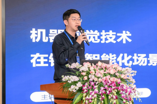 圖為上海研視信息科技有限公司董事長宋俊做《機器視覺技術在鋼鐵智能化場景中的探索與實踐》主題報告