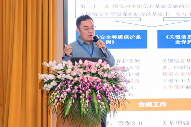 圖為烽臺科技(北京)有限公司咨詢顧問王柏淵做《數字化轉型中鋼企數據采集與安全管理》主題報告