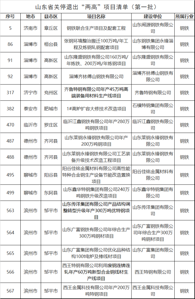 全省關(guān)停退出“兩高”項目清單(第一批)涉及鋼鐵項目如下: