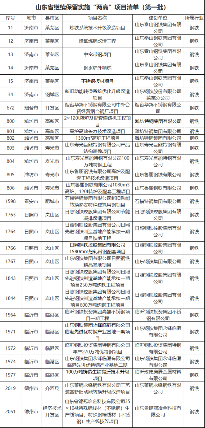 涉及44個鋼鐵項目!山東公示關(guān)停退出和繼續(xù)保留鋼鐵項目