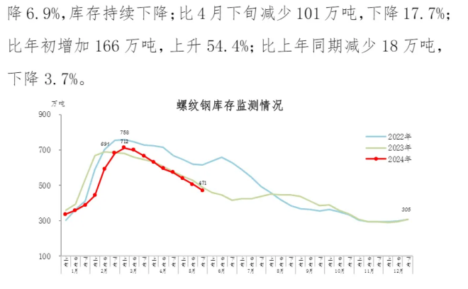 5月下旬鋼材社會庫存1061萬噸 環(huán)比下降4.7%