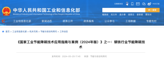5月29日,工信部節能與綜合利用司發布《國家工業節能降碳技術應用指南與案例(2024年版)》之一:鋼鐵行業節能降碳技術。