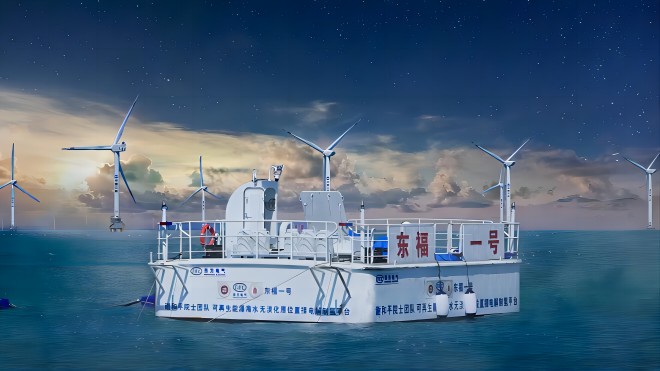 6月22日,中國工程院院士、深圳大學(xué)教授謝和平團(tuán)隊(duì)與東方電氣集團(tuán)團(tuán)隊(duì)合作,首次實(shí)現(xiàn)海上風(fēng)電可再生能源和海水直接電解制氫一體化,并在大海中利用海上風(fēng)電驅(qū)動海水制氫。相關(guān)研究成果6月21日發(fā)表于《自然·通訊》。