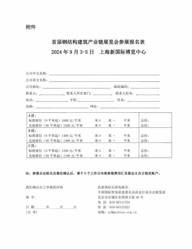 由中國鋼鐵工業(yè)協(xié)會、中國房地產(chǎn)業(yè)協(xié)會、中國鋼結(jié)構(gòu)協(xié)會、中國建筑金屬結(jié)構(gòu)協(xié)會、中國建筑節(jié)能協(xié)會、中國國際貿(mào)易促進委員會冶金行業(yè)分會主辦,中國建筑業(yè)協(xié)會、中國勘察設(shè)計協(xié)會支持,冶金工業(yè)國際交流合作中心承辦的“首屆鋼結(jié)構(gòu)建筑產(chǎn)業(yè)鏈展覽會”(以下簡稱“鋼結(jié)構(gòu)展”)將于2024年9月3日一5日在上海新國際博覽中心舉行。主辦方誠邀國內(nèi)外鋼鐵、鋼結(jié)構(gòu)、建筑產(chǎn)業(yè)鏈和生態(tài)圈相關(guān)企業(yè)積極參加本屆展覽會。