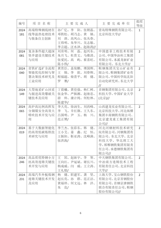 110項!2024年冶金科學技術獎推薦獲獎項目公告